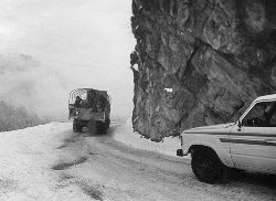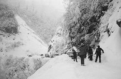 一九九七年十一月二十四日,連續(xù)多日大雪,把整個二郎山裹得嚴(yán)嚴(yán)實(shí)實(shí),白茫茫一片。陣陣山風(fēng)吹過,大霧就像瀑布一樣,從山頂直往下翻涌傾瀉。 一大早,州交通局打冰除雪排險的干部職工就從二郎山管理站直奔山埡口。載有防滑砂的大貨車穿迷霧,繞山梁,向山頂埡口疾馳。由于氣溫太低,霧又大,車上的擋風(fēng)玻璃很快就結(jié)下了冰,路面打滑非常嚴(yán)重。前面車輛堵了起來,排險人員只好下車步行。 大霧彌漫,能見度很底,陰霾的天空又飄起了紛紛揚(yáng)揚(yáng)的雪花,剌骨的寒風(fēng)陣陣襲來,只聽見車蓬布在風(fēng)中“嗶剝”作響,卻看不見前面到底堵了多少車。排險人員只好相互攙扶踩著冰滑的邊路艱難地向行。好不容易來到堵在最前面的車子面前。原來是一輛載著原木的東風(fēng)牌大貨車側(cè)滑在公路上,把整個公路堵死了。 局領(lǐng)導(dǎo)當(dāng)即指揮大家用鋼釬、鐵鎬和鋤頭處理冰道,沒有撮箕,大家借來加水桶裝運(yùn)冰雪……氣溫仍在急劇下降,剛從雪堆里刨出來的路,又被結(jié)起一層冰,就像地面上澆上了油,這就是冰雪道上有名的“桐油凌”。 有二位老同志不顧年老體弱,積極參與打冰除雪,一個在打冰時,被彈起的冰碴把腦門劃了一個口子,鮮血直往外冒。有人想幫他包扎,他堅(jiān)決不干,自己就用手帕按住,把帽子向下拉蓋住傷口就算了。血從手帕中浸透出來,與眉毛上的冰凌結(jié)在一起。氣溫太低,冰層太厚,十字鎬每挖一下,多數(shù)情況下也就是挖下一個白點(diǎn)而已。不一會兒,另一位老同志已是滿頭大汗,大家勸他休息一下,他卻說:趁著現(xiàn)在雪不是太大,早點(diǎn)把主道上的冰雪多除點(diǎn),過往二郎山的車輛就多一份安全。 排險人員的手凍紅了,刨冰雪碰傷的指頭還流著鮮血,身上蒸發(fā)的熱氣,把衣領(lǐng)口、袖子口和褲子口結(jié)成了冰,可是,誰也沒有吭一聲。 ……受堵車輛終于向前開動了。 風(fēng),越刮越猛,雪,越來越大。 防滑車在冰雪道上艱難地向前爬行著,車箱上面的職工們揮舞的洋鏟向路面撒著防滑砂。一路上風(fēng)絞雪,防滑車象一頭不聽使喚的牛,顛簸、亂竄,好不容易才來到260(二郎山最險處),對這里“桐油凌”路面進(jìn)行重點(diǎn)防滑處理后,防滑車又返回來,開始向山頂進(jìn)發(fā)……風(fēng)雪二郎山上打冰除雪、防滑排險,看似沒有驚天動地的壯舉,身臨其景才知其艱難辛苦。難怪當(dāng)年每每經(jīng)過二郎山冰天雪地奇險路段的車,都會向風(fēng)雪中屹立路邊的交通系統(tǒng)排險保暢通的職工們鳴笛致敬,風(fēng)雪中的那份情彌足珍貴。 川藏線上的老司機(jī)傳下來一首傷心的順口溜:“車過二郎山,如闖鬼門關(guān),萬幸不翻車,也要凍三天!”其險峻實(shí)為罕見,尤其是途經(jīng)二郎山260(公路公樁)處,曾被淡虎色變的人稱為“鬼招手”的險路段。 1983年1月3日,有著安全行車44萬公里記錄的一位駕駛員開著輛嶄新的東風(fēng)牌貨車,同行還有兩名職工,夜行二郎山,在彌天大霧中神秘地“失蹤”了。十五天后,搜山的人才用望遠(yuǎn)鏡看到260公里路樁處的山崖下,有一塊汽車破篷布掛在樹枝,猶如招魂的凄厲幌幡在冷風(fēng)中招搖晃動。鋼纜繩吊著搜山的人下到崖下400米深處的谷底。扒開一座座雪堆,叫人汗毛倒豎:雪堆下,盡是廢大梁、爛車廂、銹車頭和支離破碎的汽車,足有一個汽車連!一輛不知埋了多久的卡車廂里牛肉已腐爛,駕駛室里坐著三具發(fā)黑的僵尸……其狀慘不忍睹!