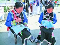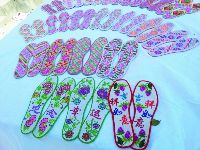 瀘定縣嵐安刺繡是純手工特色工藝品。1300多年前,羌族工藝就流傳于嵐安鄉(xiāng),刺繡工藝便是其中一種。嵐安刺繡在操作上有平繡、牽繡 、挑花和納花;工藝分圖譜和剪紙,圖譜是繡大型的如圍裙、小兒抱裙、背心等,先勾畫(huà)圖譜,按圖配色選線(xiàn)再繡;剪紙是用蠶繭殼剪成圖形,再固定在所繡之物上,配色選線(xiàn)繡,所繡之物多為涉獵帽子、鞋子、婦女的針插子、扇插子等。主要繡字、花、草、樹(shù)、鳥(niǎo)、獸、昆蟲(chóng)、山水等。全鄉(xiāng)有800余農(nóng)戶(hù),每戶(hù)都有一兩人會(huì)從事手工刺繡。刺繡產(chǎn)品可作贈(zèng)送品、商品、旅游紀(jì)念品及各種裝飾品。(徐慧 文/圖)