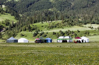 玉科草原面積大而平坦,間以森林,十分迷人,是極為罕見的天然畫卷。號稱“高原花園”的玉科草原上,矗立著一些保存完好的古石雕,散布著多處宜身的溫泉,點綴著幾個不大的高山湖泊。