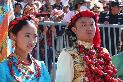 于是,年復一年,“漢子”與“花”兒們便挺拔、綻放在漢語表達的一個極點之上,被玄想,被渴望。對遠道而來的人們或是世代居于高原的子民而言,康巴漢子與康巴之花不僅僅是美的化身,通過康巴漢子與康巴之花的評比,人們在尋找一個早已失落卻又天然渾成的世界。