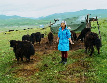達(dá)珍和她的丈夫是我州爐霍縣宗塔草原上普通的牧民,育有一對(duì)兒女,都在縣上讀書(shū),小兒子上小學(xué),大女兒讀初中,放暑假,11歲的女兒回到了牧場(chǎng),幫助阿爸、阿媽放牧。女兒的到來(lái),讓達(dá)珍家每一天都充滿(mǎn)了歡笑,7月中旬的一天,筆者來(lái)到了這里,用像機(jī)記錄了達(dá)珍的一個(gè)早晨,那是一個(gè)朝霞滿(mǎn)天的開(kāi)始?!?郭昌平 攝影報(bào)道