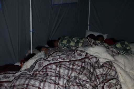 處于震中的塔公鄉(xiāng)祖慶小學在康定6.3級地震中受損嚴重,學校師生搬進了救災帳篷。地震后,校長德吉擁忠一直忙于安頓孩子們,自己病了也沒時間去衛(wèi)生所,導致眼圈紅腫,聲音嘶啞。23日晚十一時,帶病校長拿著一支不太亮的手電到孩子們的帳篷去查夜。記者用鏡頭記錄下這一過程。