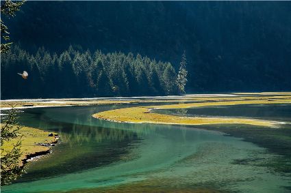 因?yàn)榭刀ǖ奶鞖?,就算?dāng)?shù)厝艘沧聊ゲ煌福袝r(shí)天空正暖陽高照,忽的便下起小雨;有時(shí)陰云密布,但轉(zhuǎn)眼便是風(fēng)和日麗;霧總是那樣飄忽不定,時(shí)常在山間聚散游走;風(fēng)永遠(yuǎn)是那么剛?cè)岵?jì),經(jīng)常在河邊回旋嬉戲……陰晴冷暖,風(fēng)雨霧雪,在這里,天氣的變化是那么隨意自由,多少有點(diǎn)肆無忌憚,總之一切的一切都是謎,這一刻的你決然猜不出下一刻的天氣。