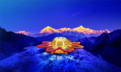 其中“群峰為屏觀景平臺(tái)”為最高點(diǎn),海拔4400米,有全國海拔最高的咖啡廳,試想下在這里喝著咖啡,欣賞佛光,看著外面云海翻騰,日照金山,仿佛置身在仙境。