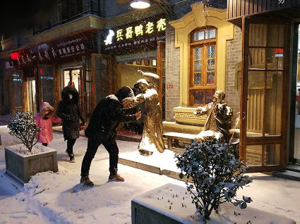 “風雨送春歸,飛雪迎春到。已是懸崖百丈冰,猶有花枝俏?!?月4日傍晚,大片大片的雪花,從昏暗的天空中紛紛揚揚飄落下來。霎時間,山川、河流、城市,全都籠罩在白蒙蒙的大雪之中。黃昏的雪,下得深切切的,好象有千絲萬縷的情緒似的,又像海水一般洶涌,能夠淹沒一切,還有一絲揭開藏頭露尾般的裸露感。雪花形態(tài)萬千、晶瑩透亮,好象出征的戰(zhàn)士,披著銀色的盔甲,又像是一片片白色的戰(zhàn)帆在遠航…… 落光了葉子的柳樹上,掛滿了毛茸茸、亮晶晶的銀條兒;冬夏常青的松樹和柏樹,堆滿了蓬松松、沉甸甸的雪球。那一片雪花在空中舞動著各種姿勢,或飛翔,或盤旋,或直直地快速墜落,鋪落在地上?!昂鋈缫灰勾猴L來,千樹萬樹梨花開”——這是雪的燦爛;一場瑞雪,扮美了康定,年味籠罩的康定城,嫵媚妖嬈。無論是背水姑娘、有著年味兒的將軍橋,還是大紅燈籠高高掛的康定門,都在雪后別有一番景致。與美景合影、和朋友玩雪都是最佳選擇。在風雪中,交警不畏嚴寒默默堅守崗位 ,指揮交通疏堵保暢。他們的身影在皚皚風雪路上站成一道道最美的風景,溫暖了康定。從早上六點開始,康定的環(huán)衛(wèi)工就迎著刺骨的寒風,開始了除冰雪保通暢的行動,在積雪覆蓋的康定城,早起的商販樂呵呵地做起了買賣;民工迎著雪后的寒風出門務工,他們是最可敬的人。
