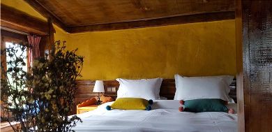 而在墨石公園山下中古村的墨石林卡,也是一片民宿群。小樓外觀依然匠心獨運,內(nèi)部同樣干凈整潔。