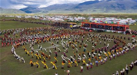 7月30日,在四川省理塘縣八一賽馬場(chǎng),康巴漢子從草原疾馳而過(guò)。