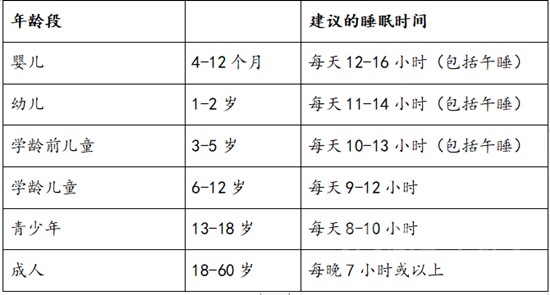 隨著年齡的增長(zhǎng),每個(gè)人需要的睡眠時(shí)間也會(huì)發(fā)生變化。美國睡眠醫(yī)學(xué)會(huì)和中國睡眠研究會(huì)建議: