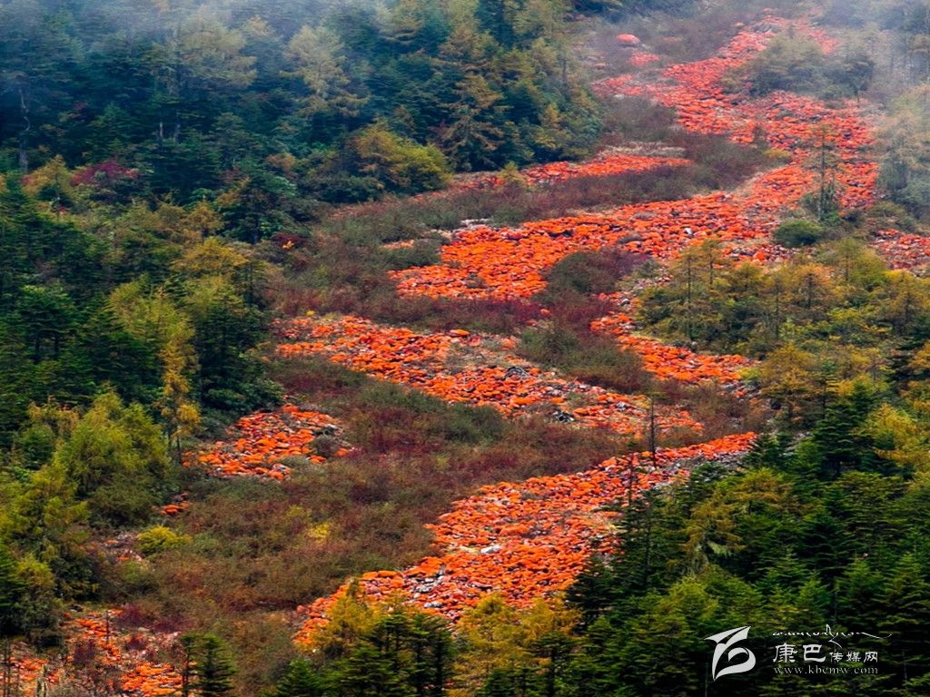 看來要想出現(xiàn)大規(guī)模的紅石灘景觀,除了溫度、濕度、光照等條件外,還需要以下條件:一是要有原生的石頭;二是要有大量的這種石頭;三是給這些石頭一個巨大的舞臺,讓其亮相。當這些條件都具備了,紅石灘就出現(xiàn)了。這種條件怎樣才能夠出現(xiàn)呢?我想到了“泥石流”。