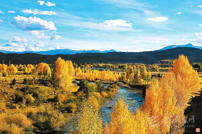 本網(wǎng)訊 10月7日,隨著深秋的到來,位于川西高原藏區(qū)的理塘縣甲洼鎮(zhèn)成片白楊樹由綠變黃,藍藍的天空、寧靜的藏寨,構(gòu)成了一幅美麗鄉(xiāng)村畫卷。