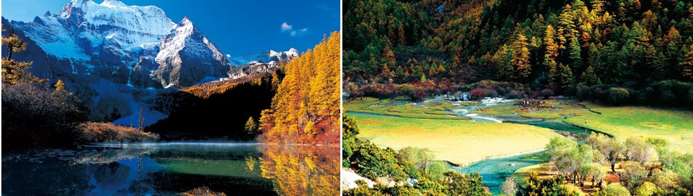 海拔5145 米,在藏語里的意思是“閃光的山”。這里的拉姆格林區(qū)是稻城最大的林區(qū)。此山山勢平緩,山上的風云變幻莫測。當10月的初霜降臨俄初山的山嶺峰谷時,雪線以下的林濤樹海正換上繽紛的秋裝。在俄初山頂遠眺貢嘎日松貢布雪峰,景色十分壯觀。