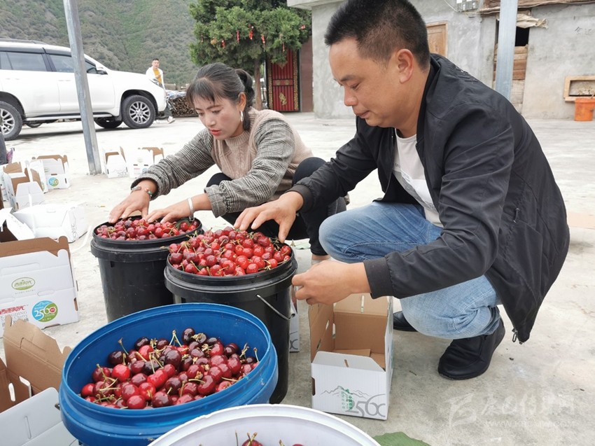 五月的大渡河沿岸鮮花怒放、瓜果飄香,黃橙橙的枇杷,紅彤彤的櫻桃沉甸甸地掛滿枝頭。近日,“鄉(xiāng)村振興·櫻你而美”康定市甜櫻桃采摘品鑒現(xiàn)場會在該市姑咱鎮(zhèn)莊上村舉行。拉賓斯、布魯克斯、美早、早紅珠、晚紅珠、紅燈、明珠等10多個(gè)品種大櫻桃均已成熟,各路客商紛紛與村合作社對接訂貨。