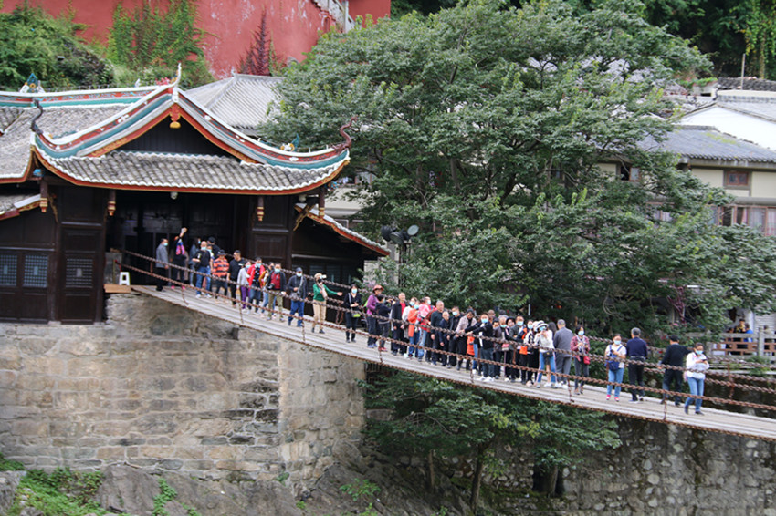 游客參觀瀘定橋。