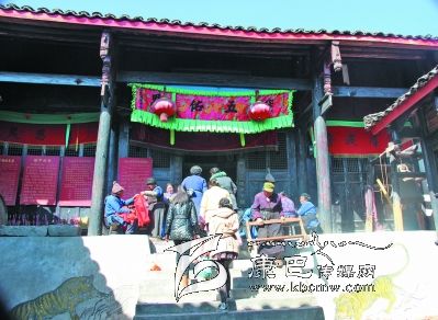 余平老人把打牌的位子讓給別人,坐過來和我們談話。他說現(xiàn)在子女都長大,家里沒負擔(dān),日子硬是清閑。說起過年,老人說家里并沒有什么特別的風(fēng)俗,和別家一樣,掛春聯(lián),殺豬,吃年夜飯,一切程序都是一樣。在他的記憶里,年幼的時候,每逢過年便要隨家里的長輩到余家祠堂祭祖,去白馬廟燒香。