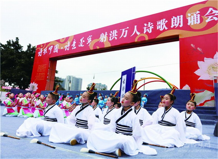 據(jù)了解,本次活動(dòng)是《詩刊》2016年度陳子昂詩歌獎(jiǎng)系列活動(dòng)之一,參與人數(shù)之多、規(guī)模之大,在射洪縣尚屬首次。現(xiàn)場(chǎng)由射洪中小學(xué)生和企事業(yè)單位組成的方陣和演出隊(duì)伍,以載歌載舞或配樂詩朗誦等形式登臺(tái)表演, 內(nèi)容以經(jīng)典詩詞為主,也有圍繞當(dāng)前中心工作而創(chuàng)作的新詩。這是文化的傳承,更是血脈的延續(xù)。參加詩歌朗誦會(huì)的最小的4歲,或許他們不懂文字背后的美,并不理解字里行間透露出的人生況味,但他們?cè)谏浜檫@樣的文學(xué)滋 養(yǎng)中出生、成長(zhǎng)。