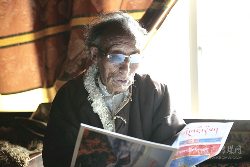 彭措郎加正在閱讀本報(bào)的《康巴印畫(huà)》雜志。
