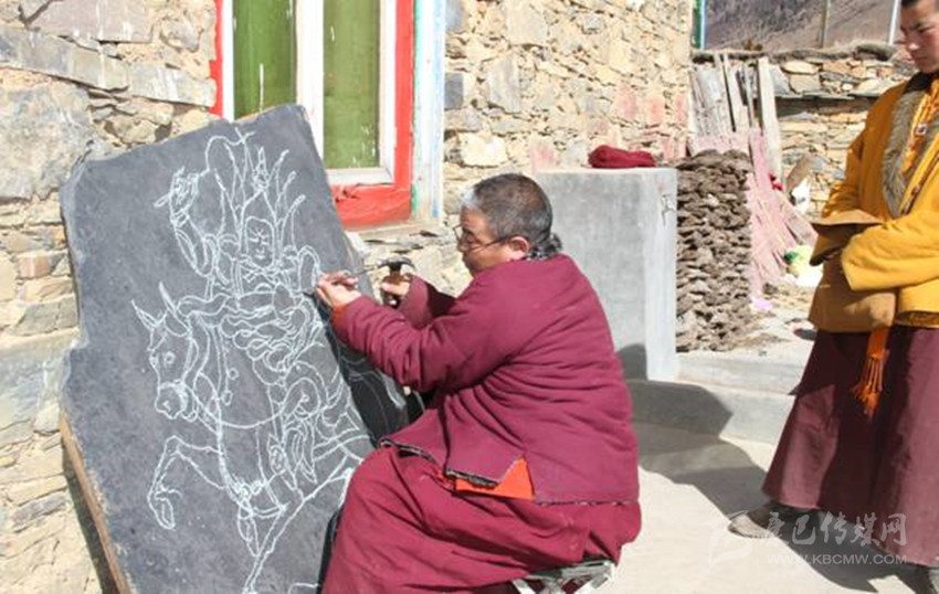 道孚縣東部的龍燈壩曾是格薩爾王征戰(zhàn)過的地方,這里以“格薩爾通”為核心的格薩爾文化世代流傳、積淀深厚,且富有質(zhì)地堅(jiān)硬、品相良好的天然頁(yè)巖。在歲月的長(zhǎng)河中,龍燈人把傳統(tǒng)繪畫、歷史傳說和石刻工藝緊密融合,創(chuàng)造了獨(dú)具特色的龍燈石刻,填補(bǔ)了格薩爾文化在藏族石刻中的空白。千百年來,龍燈人像傳承基因一樣世代傳承著這門“專屬”工藝。