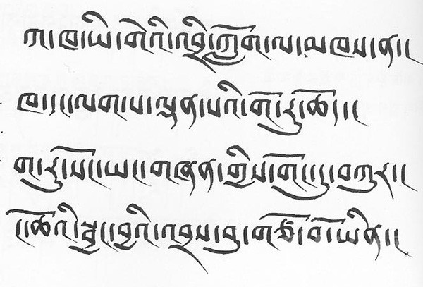 吐蕃時期還產(chǎn)生了密文體、伏藏體、幻妙體等許多書體。佛教分為顯宗和密宗兩大修行范疇。密宗傳入吐蕃是在公元八世紀,是印度佛教大師蓮花生傳入吐蕃的。密文體是蓮花生和他的吐蕃密妃康卓益西措杰創(chuàng)新的專門用于記錄書寫密宗典籍的特殊書體。雖然,其形狀與通行的藏文書體不太一樣,但是其拼寫讀法、文法、正字法等均與通行的藏文一樣。因此,密文體是藏文的一種特殊的書體。密文體有十幾種。佛教的傳播過程中,常常遇到 挫折,因此,為了避免佛法失傳,佛教徒常將佛教典籍埋入地下,稱為伏藏。其目的是以備日后的佛教徒掘藏佛經(jīng),繼續(xù)宏傳佛法。伏藏體正是專門用于書寫伏藏經(jīng)文的特殊的藏文書體。伏藏體也有十幾種書體。