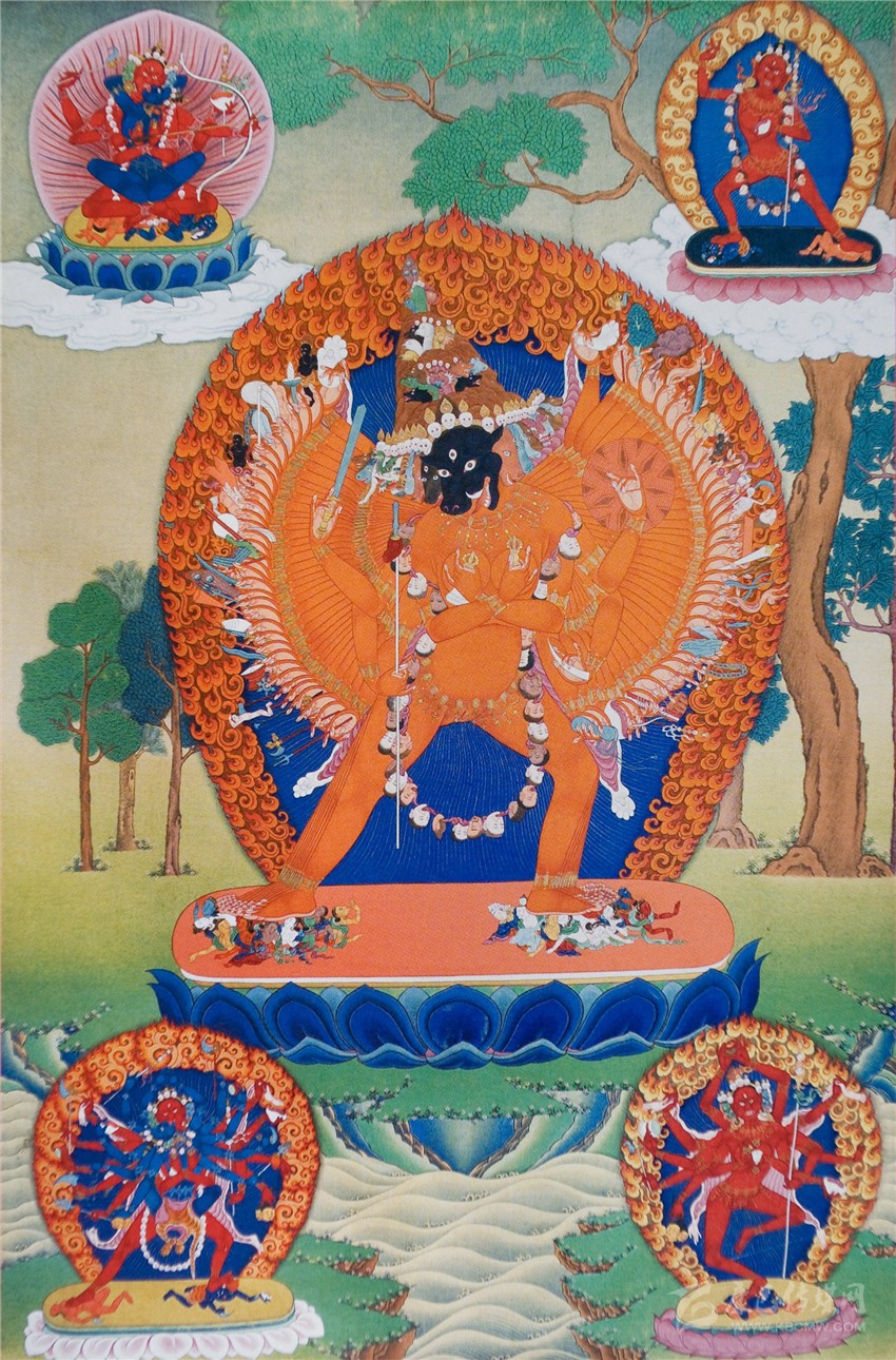 夏魯寺風(fēng)格。公元十四世紀(jì),西藏薩迦勢力興起,昆氏家族請了包括阿尼哥在內(nèi)的許多尼泊爾藝人來西藏從事佛教藝術(shù)工作,這就是尼泊爾畫派在西藏的興起。當(dāng)時(shí),在尼瓦爾藝術(shù)家中有一位叫“阿尼哥”(阿尼哥,Anigo,1244—1306,建筑師,元朝雕塑家,工藝美術(shù)家。尼波羅國人,為王室后裔。其祖名密迪邇,父名臘可納。阿尼哥于1244年出生在尼泊爾加德滿都帕坦城。1260年,阿尼哥帶隊(duì)抵達(dá)西藏薩迦寺,完成了黃金塔的建造任務(wù)之后,被愛國愛教大師、元朝帝師八思巴帶到了元大都,舉薦給元世祖忽必烈。當(dāng)時(shí),他擔(dān)負(fù)大護(hù)國仁王寺、大圣壽萬安寺等皇家大寺的興建任務(wù)。)的工藝美術(shù)大師。因?yàn)樗怀龅牟拍埽灰曌鳌肮で商炫佐赡Α痹谌耸篱g的化身。八思巴不僅委任阿尼哥主持修建了薩迦金塔,還把他帶到了北京城推薦給元朝皇帝忽必烈。在中國內(nèi)地,阿尼哥主持設(shè)計(jì)修建了北京妙應(yīng)寺和五臺(tái)山等地的大白塔。同時(shí),阿尼哥還是一位優(yōu)秀的畫家。傳說這幅尼瓦爾風(fēng)格的唐卡《綠度母》就是阿尼哥的作品。畫面構(gòu)圖整體、細(xì)節(jié)考究精致、設(shè)色典雅,這也是尼瓦爾藝術(shù)的風(fēng)格特色。