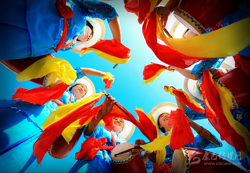 鑼鼓歡天慶祝十九大。 苗青 攝