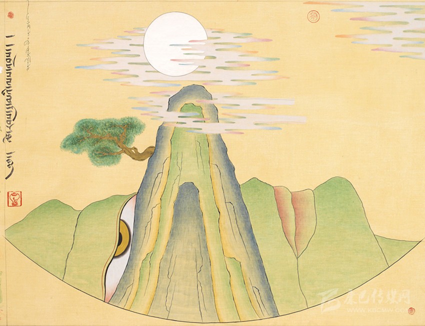 15世紀(jì)以來,唐卡發(fā)展所恒定的兩個元素:一是平面構(gòu)圖的神佛之境,另一則是吸收大青綠山水精髓。正如DNA鏈的雙螺旋結(jié)構(gòu)一般,使唐卡繪畫在歷史時空中穿插縈繞,在雪域各地生根開花。到了公元20世紀(jì)初,照片的高度寫實促使藏地畫家邁出了革新步伐,使得唐卡繪畫逐漸擺脫傳統(tǒng)束縛,開啟了“人”的覺醒。衛(wèi)藏地區(qū)出現(xiàn)了“根敦群培、安多強巴”引入寫實主義的嘗試,成為當(dāng)今西藏“布面重彩”的先驅(qū)。新中國成立后,內(nèi)地的美術(shù)創(chuàng)作積極影響了三大藏區(qū)的繪畫發(fā)展,上世紀(jì)80年代,四川康區(qū)“甘孜藏畫”肇起,在《嶺·格薩爾王》人文主義的召喚下,《雪山兒女》《唐東杰布》《新概念唐卡》正從歷史深處一路走來。而近年來,安多藏區(qū)則創(chuàng)新出了“藏族祥巴版畫”,祥巴版畫不僅是從材料技法上對西藏繪畫的豐富,更是藏地畫家們在自覺不自覺的求新、求變;甚至在傳統(tǒng)唐卡領(lǐng)域,民間畫師也都在紛紛嘗試將傳統(tǒng)唐卡和現(xiàn)代審美相結(jié)合。這一切,正是唐卡繪畫從傳統(tǒng)走向現(xiàn)代、由宗教博衍至生活的演變過程,在這個過程里,藏地畫家不僅在畫面的形式和語言上完成了傳統(tǒng)與當(dāng)代的統(tǒng)一,還將西藏的審美特質(zhì)虹化為作品的精神內(nèi)核。這也是唐卡藝術(shù)第二次“從香巴拉到人間”的過程,成為民族文化發(fā)展的新坐標(biāo)。