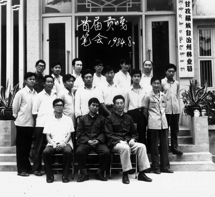 我們也在籌備,這就是《貢嘎山》雜志創(chuàng)辦以來的第一次筆會。根據(jù)當時我州作者的創(chuàng)作情況,編輯們商議決定搞一次筆會,這次筆會以小說創(chuàng)作為主。當時我州的詩歌創(chuàng)作非常活躍,很多從學(xué)校出來參加工作的年青作者都很喜歡詩歌創(chuàng)作,創(chuàng)作水平也還不錯,而且還活躍著很多的文學(xué)社團,散文寫作的人也不少,唯獨就是小說創(chuàng)作始終在作者人數(shù)和質(zhì)量上都達不到刊物的要求。針對這種現(xiàn)狀,我們對當時發(fā)表和寫過小說的所有作者都進行統(tǒng)計,并發(fā)出了參加筆會的約稿信,并決定1984年8月在康定姑咱鎮(zhèn)林業(yè)管理局招待所舉辦首屆《貢嘎山》筆會,通過近一年的準備,檢視作者來稿情況確定了18位作者(一名女作者)參加首屆《貢嘎山》筆會,他們是仁真旺杰、高旭帆、胡杰、劉富貴、王浩東、宋濤、格妮措、杜仁信、王方霖、劉述義、孫浩東、牟子、朱長安等,郭昌平參加了開班后有事走了,給我們留下這張珍貴的合影照片。