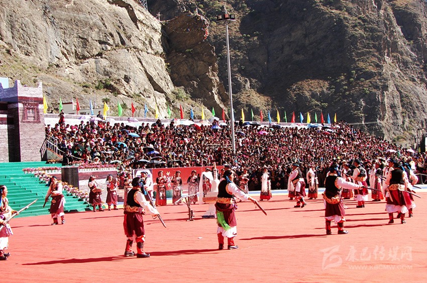 槍舞,嘉絨語中稱為“訥沖呷兒”,主要是在祭祀、集會、節(jié)日時表演的一種近似于戰(zhàn)術(shù)的舞蹈。在舞蹈中,舞者圍成一個圓圈,手持明火槍,明火槍,是最早的一種真正適于在戰(zhàn)場上為軍事目的使用的火槍。槍膛為一根圓柱形的鐵筒,筒口直徑為三厘米左右,在槍膛底部,有一個小圓孔伸出槍管,為導(dǎo)火管。如耳朵狀,因此也稱為槍耳,主要是用來點火的地方。圓筒固定在堅硬的木托頂端。這種輕火器或者說小型火炮使用的是形狀不規(guī)則的彈丸,即不大的實心彈,它緊貼大粒火藥制成的裝藥,借緊挨導(dǎo)火孔的火繩發(fā)射。