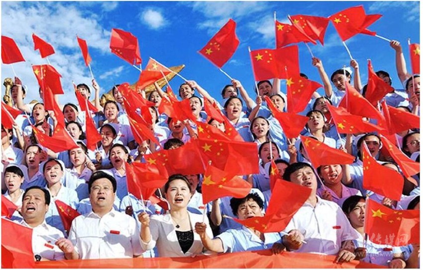 56個(gè)民族唱響紅歌。五星紅旗,你和太陽一同升起,升起一個(gè)令世界矚目的高度。14億人民,56個(gè)民族殷殷的祝福,匯入載歌載舞的歡騰,所有的中華兒女喜上眉梢,喜也燦爛!