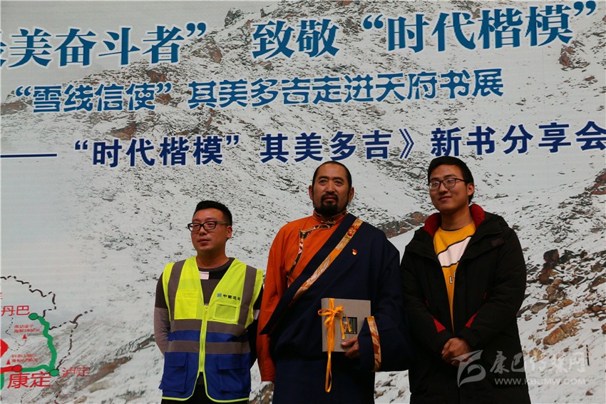 分享會(huì)的座位上,精美禮品袋里裝放著今天的“主角”——新書《雪線信使——“時(shí)代楷模”其美多吉》。翻開書本,“他是流浪地球上的康巴漢子”“他是圣潔甘孜的大愛(ài)之人”“他是絨麥峨扎的忠誠(chéng)信使”的句子映入眼簾。