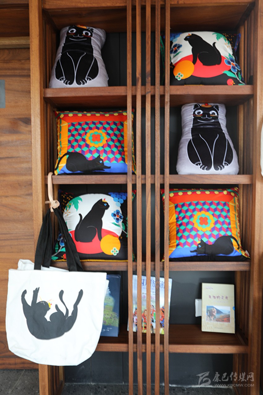 12月16日,在甘孜州最“年輕”的國家4A級旅游景區(qū)——鄉(xiāng)城青德藏鄉(xiāng)田園景區(qū),記者看見繪制著“香巴拉貓”各式姿態(tài)和各色造型的文創(chuàng)產(chǎn)品:一只只通體黝黑、須髭分明、豎瞳開闔的“貓”或在抱枕上呆萌端坐,或在布袋上悠游嬉戲,或在胸針上不卑不亢,或在靠墊上舒展懶腰······