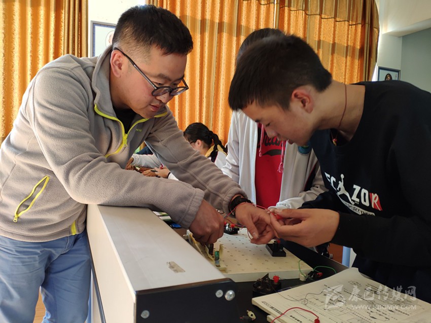 孫橙陽老師在爐霍縣中學物理實驗室指導網班學生做實驗。