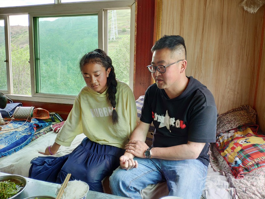 在路上,孫橙陽十分焦急,立刻和他學生洛絨巴登的媽媽、德拉龍村第一書記邱瑪溝通,想盡快與患者取得聯系。