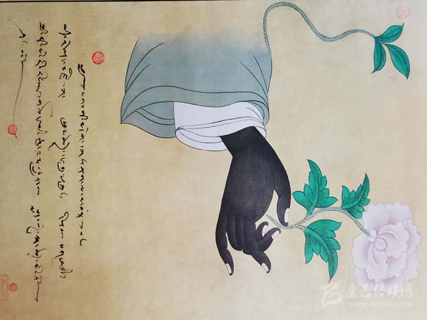 按照耷·瓊培所說,本文開頭提到的那副唐卡畫也有著特殊的意義。據(jù)了解,該幅唐卡畫名為《紅黑白》,整幅畫旨在表達(dá)無所謂手腕的黑白,艷麗與秀雅,完美與尊崇,源自手心的花莖就會(huì)被潔凈的細(xì)流滋養(yǎng),最終盛開蓮花簇簇。