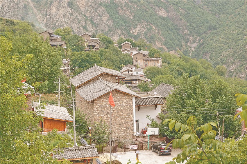但那時如細索一樣盤繞在陡峻坡崖間的山路牢牢地拴住了山民的腳。多少年過去了,老樹尚在,世事卻變化得讓人難以置信。眼下的貢安山梁上正在建造一座數(shù)層高的觀景高樓,這極可能成為麥崩山鄉(xiāng)新的“地標”。尚未峻工的觀景樓臺右側,沿起伏的山梁已修筑兩公里長的步游廊道,野花簇擁,起伏如龍。山堡里民居接待、亭院廊樓、果樹花臺夾雜于坡地綠叢間,時不時有外地旅游觀光小車沿新筑的水泥公路駛入山堡,已具現(xiàn)代旅游商業(yè)化的規(guī)模。
