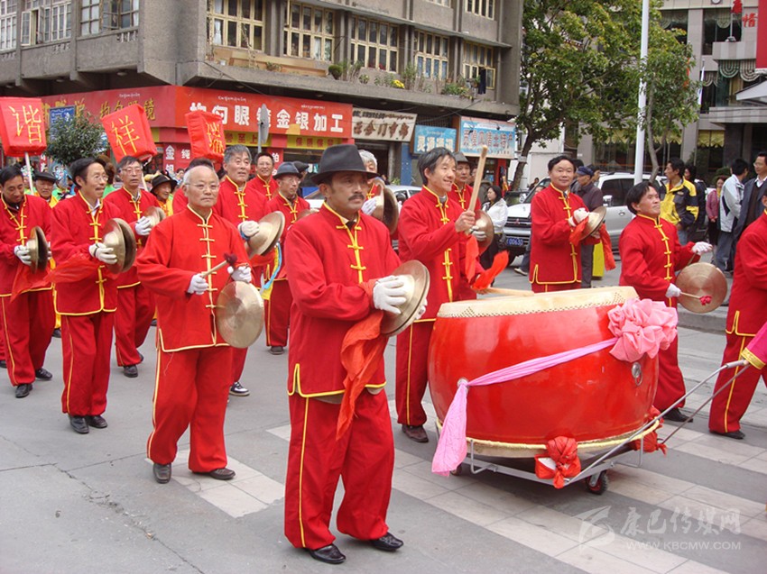 大年三十夜,山谷中的康定城廓鼓聲震天,“鬧山鼓”將過年的氣氛推向了高潮。當(dāng)年“鬧山鼓”打得最好的是一位人稱“韓八爺”的陜西漢子,后來“韓八爺”打不動(dòng)了,由另一家陜西戶縣來的姓徐的人家接替。徐家老父打不動(dòng)了又傳給了徐大哥。到徐大哥操鼓槌時(shí),參與打鼓的已不再全是陜西人了,康定熱愛這鼓聲的藏、漢、回族漢子也參與進(jìn)來,成了多民族的鼓隊(duì)。這原本屬于陜西戶縣的“老陜鼓”,如今在戶縣卻打不全了。徐大哥健在時(shí)說,“鬧山鼓”鼓譜共有20多節(jié),那年他回戶縣探親,戶縣的鼓匠最多只能打一半的鼓譜,而在康定,全套的鼓譜卻被這支多民族的鼓隊(duì)流傳了下來。