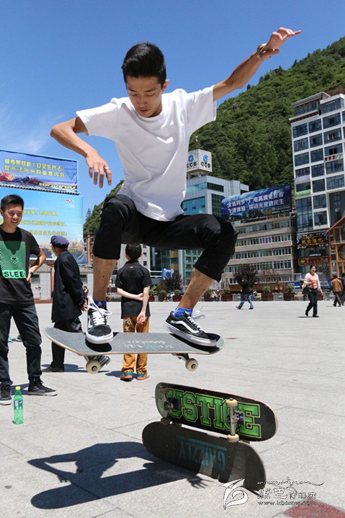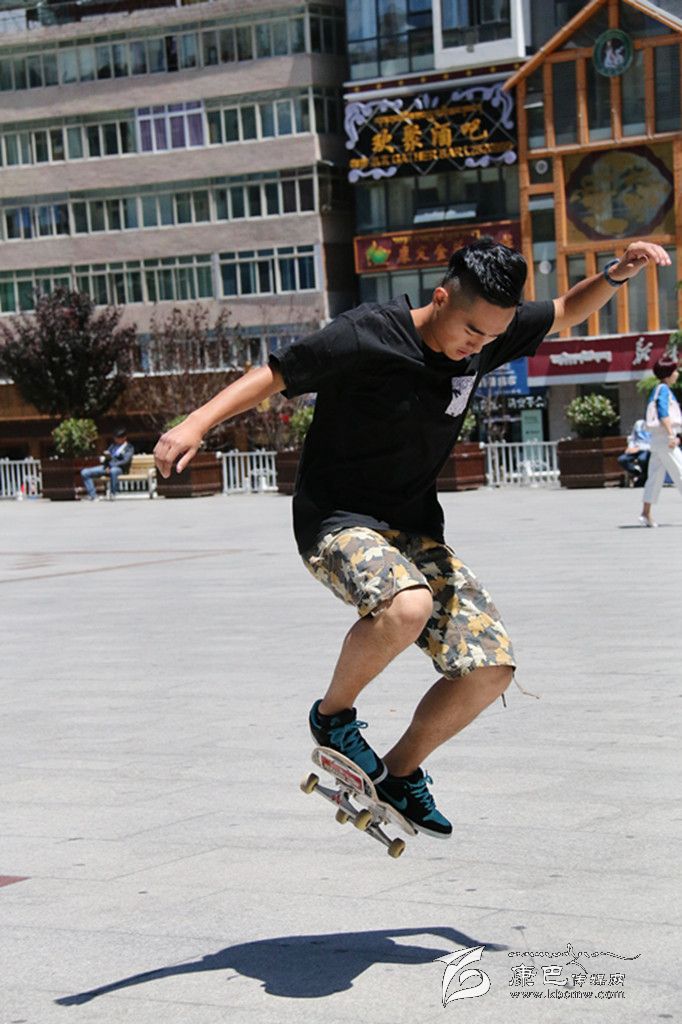 提到極限運動,你首先會想到什么?直排輪、空中沖浪、跑酷、攀巖……它們中很多都由滑板延伸而來,因此滑板又被稱為極限運動的“鼻祖”。在康定,有這么一群年輕人,他們每到暑假,每天都會在情歌廣場集合,踏上滑板、踩上輪滑挑戰(zhàn)一個個“不可能的任務(wù)”。一身肥大的T恤牛仔,夸張的金屬耳釘、項鏈、手鏈、戒指,和著動感十足的Hip-Hop音樂,踩著滑板在障礙之間穿梭,間或穿插幾個高難度花式動作,引得觀眾此起彼伏地喝彩尖叫……這是很多人印象中滑板、滑輪小子的形象。但當(dāng)賀淼、謝明洋、陳凱他們出現(xiàn)在記者面前時,簡單的裝束真有點讓記者意外。他們的身上幾乎不見任何首飾,普通的T恤加瘦版牛仔褲,還有頭上簡單的鴨嘴帽, “Hip-Hop” 前衛(wèi)的影子并不明顯。