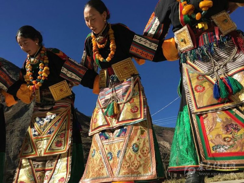 蒙自鍋莊服飾獨(dú)特,屬東義服飾類。稻城東義女式服飾感覺與鄉(xiāng)城瘋裝有些相似,融合了納西族女裝和稻城土裝的元素,一是折疊多、折疊數(shù)是固定的,內(nèi)折和外折各54個(gè),左右胸襟分別以紅黃綠黑等顏色的料子鑲拼而成,分別代表財(cái)富、福壽、牲畜、先知、土地。男式服裝比較簡(jiǎn)便,突出之處就是系在腰間的彩帶。