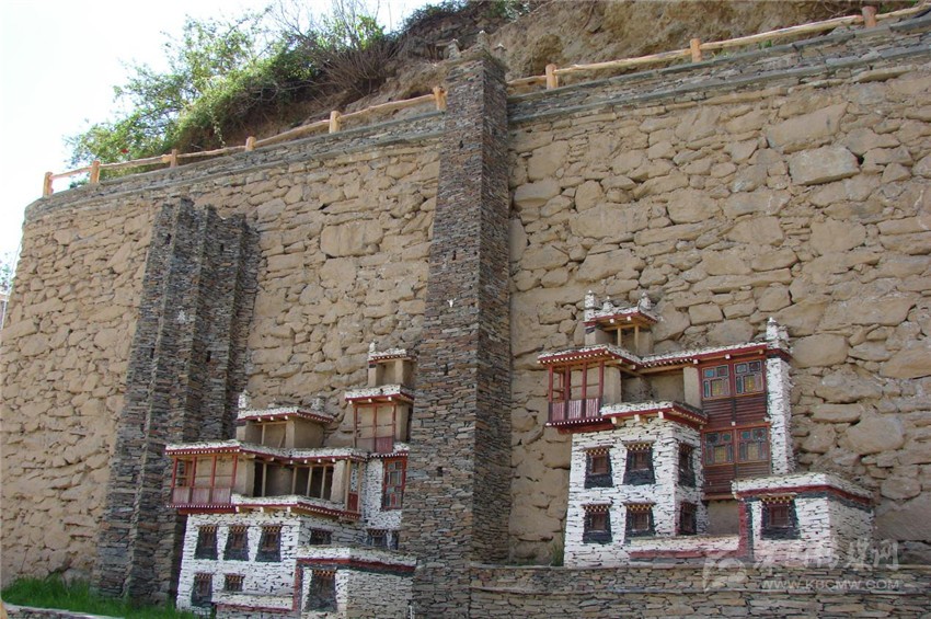 宋達村活動場所是一個寬約二十米,長約三十米的大壩,里面是高約十米的石砌圍墻,此時幾個工人正在忙碌著,幾座建筑模型已初見成形,最左邊是一座十三角碉的模型,一名工人坐在碉樓的樓頂上拿著手錘正奮力的敲打著眼前的石片,那石雕一半露在墻外,還有一半巧妙的鑲嵌在圍墻里。筆者走上前去,來到“碉樓”下,整座碉樓都是用灰色的石片砌成,每個石片間距一致,幾乎不見一點縫隙,充分展示了嘉絨人民高超的石砌技藝。十三角碉,顧名思義,就是整座碉樓由十三個角組成,在古時候是展示財富和地位的一種表現(xiàn)形式,砌墻的師傅非常健談,他告訴我,在嘉絨地區(qū),碉樓又以十三角碉最為罕見,據(jù)說,如今殘存的十三角碉全世界都只有三座,而其中保護得最為完整的尤數(shù)梭坡鄉(xiāng)普格頂村了,他頓了頓,伸出布滿青筋沾滿灰塵的手,往上指了指,自豪的說,它就在我們宋達村的山巔上,我不禁肅然起敬,為家鄉(xiāng)擁有這樣一座凝聚著嘉絨人民智慧結(jié)晶的古碉而激動不已。在十三角碉旁,是一座典型的嘉絨藏房模型,共有五層,第一層為關(guān)牛羊的畜圈,石砌匠人巧妙的將一樓門洞和排水口合二為一,即增加了美感,也增加了科學(xué)性。第二層樓房有兩扇窗戶,是人們飲食起居的重要場所。第三層樓房上有三扇窗戶,是儲藏糧食、臘肉的地方。每一扇窗按照比例縮小制成,當筆者問匠人為什么嘉絨藏房的門窗都如此矮小時,他對此也娓娓道來。他告訴我,古時候嘉絨大地上混沌莫開、妖魔橫行,人們每天都在膽戰(zhàn)心驚中度過,那時候的房屋窗戶、門都修得異常的高大,夜幕降臨時,這些妖魔就從窗戶、門洞里爬進來,將熟睡的人擄走,后來嘉絨女王要求屬民們將窗戶和門洞改小,后來人們一直將此修建之法一直延續(xù)至今。第四層上是用木板、木頭作成的回廊,紅白相間,煞是美觀。第五層是堆放雜物的場所,石墻的每個角上都有石砌的尖角,如牛角一樣直指蒼穹,在尖角之間,有煨桑祈福的佛塔。再往右邊是一座四角碉的模型,由于只有四角,因此在修建中速度比十三角碉快了許多,那棱角愈發(fā)的鋒利。在嘉絨藏區(qū),這種碉樓是最常見的碉樓之一,碉樓藏語中稱為“邛籠”。早在2000年前《后漢書'西南夷傳》就有羌族人“依山居止,壘石為屋,高者至十余丈”的記載。碉樓多建于村寨住房旁,高度在10至30米之間,用以御敵和貯存糧食柴草。碉樓有四角、六角、八角幾形式。碉樓一般建于沿河谷高山或半坡有耕地和水源的地方,結(jié)合地形,利用有限的平臺,利用石頭筑成平頂。一般分成二層或三層,上層堆放糧食,中層住人,下層圈養(yǎng)牲畜,高二三丈,稱為邛籠;高的可有十三層,達十余丈,稱為碉。碉樓由專門的砌石匠修建,原料為亂石,用泥土粘合,不吊線,不繪圖,全憑經(jīng)驗,信手砌成。其壁面能達到光滑平整,不留縫隙,其堅固程度則可在川西這個地震多發(fā)區(qū)聳立數(shù)十年甚至數(shù)百年,經(jīng)歷數(shù)次地震仍然巍然屹立,有的已偏倚卻不倒,有的彎曲為弓,自成風景。它按照功能分為戰(zhàn)碉、家碉、寨碉等。再往右邊走,是一座低矮的樓房,它也是嘉絨藏區(qū)最為常見的藏房之一,雖然低矮,然而其中的雕樓畫棟美不勝收。據(jù)縣農(nóng)辦負責人介紹,宋達村地處普格頂山腳下,省道線從門前經(jīng)過,山頂山有著為名遐邇的十三角碉,民風純樸,因此該村要突出物質(zhì)文化引領(lǐng)經(jīng)濟建設(shè)的發(fā)展,為此打造碉樓文化及藏族民居文化,吸引大批游客走進村莊里,鼓勵村民自己建造有著嘉絨風味的藏族民居,實現(xiàn)生產(chǎn)發(fā)展,這是新農(nóng)村建設(shè)的中心環(huán)節(jié),是實現(xiàn)其他目標的物質(zhì)基礎(chǔ),也是我們打造宋達村新農(nóng)村建設(shè)所思考的問題,我們也逐步在實現(xiàn)這目標。