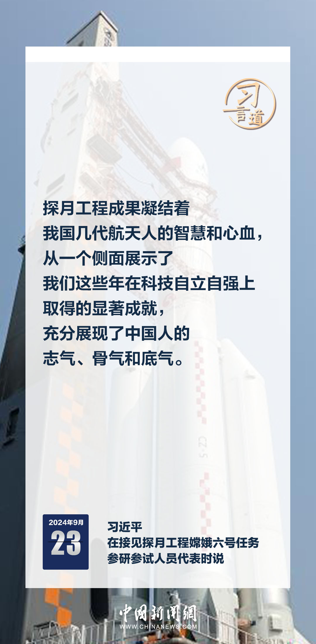 中共中央總書記、國家主席、中央軍委主席習(xí)近平23日在人民大會堂接見探月工程嫦娥六號任務(wù)參研參試人員代表時發(fā)表重要講話。習(xí)近平指出——