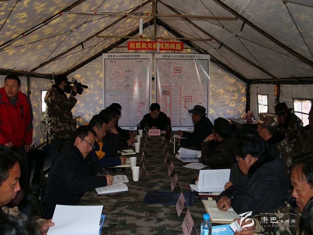 在前線(xiàn)指揮部,胡昌升主持召開(kāi)前指工作專(zhuān)題會(huì)議,傳達(dá)了省委書(shū)記王東明和省長(zhǎng)魏宏到我州地震災(zāi)區(qū)調(diào)研指示精神,聽(tīng)取前線(xiàn)指揮部辦公室和營(yíng)地各單位、康定縣、道孚縣關(guān)于抗震救災(zāi)工作的匯報(bào)。