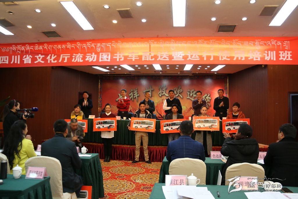 本網(wǎng)訊(記者 宋志勇文/圖)10月13日,四川省文化廳流動(dòng)圖書(shū)車(chē)配送暨運(yùn)行使用培訓(xùn)會(huì)在康定市舉行,共為我州配送流動(dòng)圖書(shū)服務(wù)車(chē)18輛。省文化廳副廳長(zhǎng)向華全,州委常委、宣傳部長(zhǎng)相洛,省文化廳財(cái)務(wù)處處長(zhǎng)潘沛等出席并為18個(gè)縣(市)發(fā)放了車(chē)鑰匙。