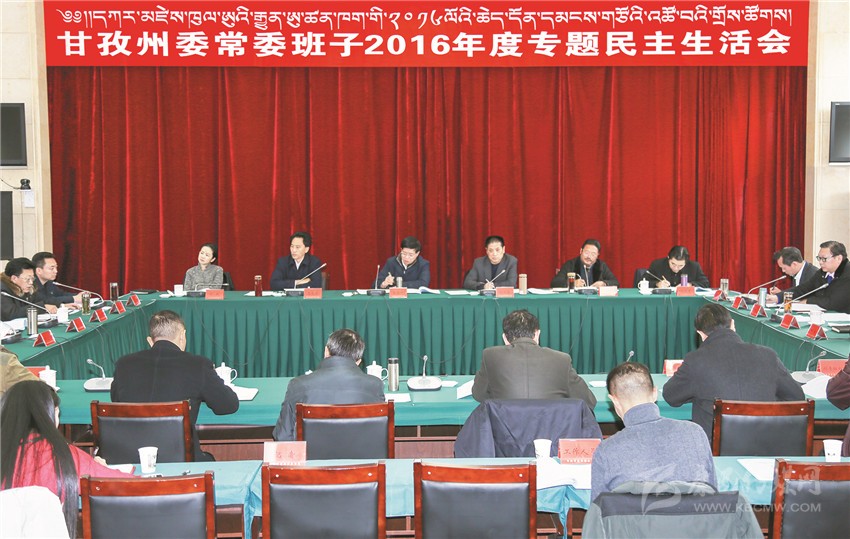 本網(wǎng)訊(記者 楊杰 文/圖)11日下午,州委常委班子召開(kāi)2016年度民主生活會(huì)。會(huì)議深入學(xué)習(xí)貫徹黨的十八屆六中全會(huì)、省委十屆九次全會(huì),圍繞“兩學(xué)一做”學(xué)習(xí)教育,重點(diǎn)對(duì)照中央《關(guān)于新形勢(shì)下黨內(nèi)政治生活的若干準(zhǔn)則》《中國(guó)共產(chǎn)黨黨內(nèi)監(jiān)督條例》和省委《關(guān)于加強(qiáng)和規(guī)范黨內(nèi)政治生活嚴(yán)格黨內(nèi)監(jiān)督鞏固發(fā)展良好政治生態(tài)的決定》,結(jié)合實(shí)際進(jìn)行黨性分析,開(kāi)展批評(píng)和自我批評(píng)。會(huì)議旨在讓州委常委班子成員從思想、組織、作風(fēng)、紀(jì)律等方面查找存在的突出問(wèn)題,逐一抓好整改落實(shí),切實(shí)從思想和靈魂深處經(jīng)受一次深刻的洗禮和教育,以更加優(yōu)良的作風(fēng)、更加扎實(shí)的工作,展現(xiàn)新一屆班子的新形象,為決戰(zhàn)脫貧攻堅(jiān)、決勝全面小康,建設(shè)美麗生態(tài)和諧小康甘孜奠定良好的政治基礎(chǔ)。