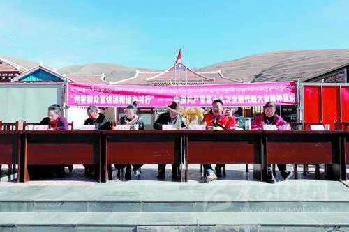 當(dāng)天,州委群眾宣講團成員分三組分赴尼斯鎮(zhèn)、熱打鄉(xiāng)、水洼鄉(xiāng)和正斗鄉(xiāng)開展十九大精神宣講。宣講員們緊扣“不忘初心、牢記使命”的主題,圍繞群眾最關(guān)心的精準扶貧、醫(yī)療救助、義務(wù)教育以及愛國守法、依法治國等方面向群眾進行精彩宣講。接地氣的宣講贏得群眾陣陣掌聲,講到精彩處群眾還為宣講員敬獻哈達。