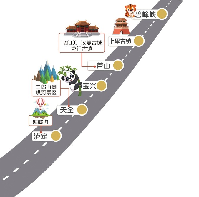 繼續(xù)往前走,車子一路向西,在多功出口下高速,再沿國(guó)道351線繼續(xù)前行不久,便是“漢代文物之鄉(xiāng)”蘆山,有飛仙關(guān)、漢姜古城、龍門古鎮(zhèn)3個(gè)4A級(jí)景區(qū)。如果從蘆山沿國(guó)道351線繼續(xù)走,則到了“熊貓老家,傳奇寶興”。
