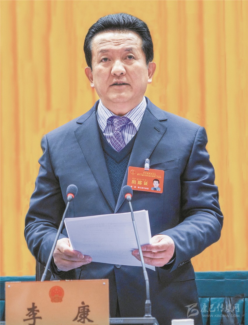 州長肖友才代表州人民政府向大會作政府工作報告。報告分三部分:2017年工作回顧;2018年主要目標任務(wù);2018年重點工作。
