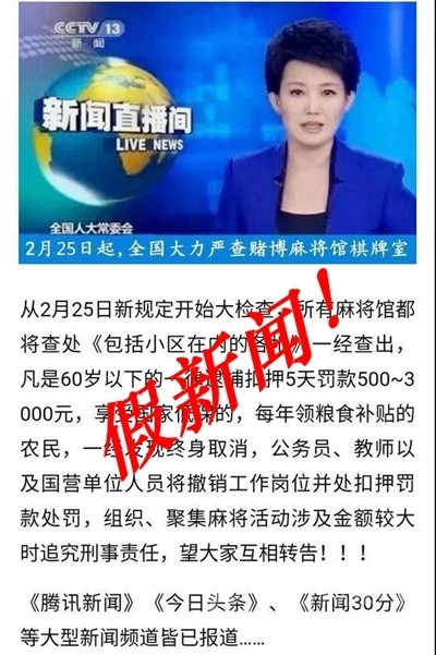 據(jù)介紹,“25日起全國(guó)嚴(yán)查棋牌室”的謠言最早出現(xiàn)在2014年,在此后幾年中,這條謠言改頭換面又反復(fù)出現(xiàn),而且出現(xiàn)的時(shí)間也有了規(guī)律,比如每年的5月1日(勞動(dòng)節(jié)長(zhǎng)假)前、9月1日(開(kāi)學(xué))前、10月1日(國(guó)慶長(zhǎng)假)前等。