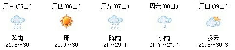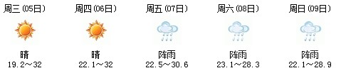 5日白天開(kāi)始一直到9日,以多云天氣為主,其中7日晚有陣雨,日最高氣溫在30度上下,天氣比較舒適,不會(huì)出現(xiàn)高溫天氣,高考和端午節(jié)期間天氣還是比較給力: