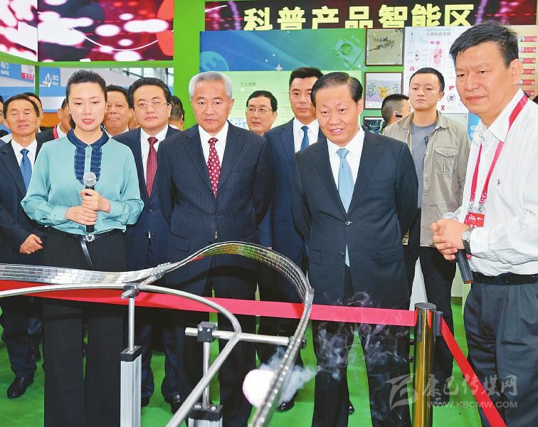 9月5日,全國(guó)政協(xié)副主席邵鴻,省委書(shū)記、省人大常委會(huì)主任彭清華及參會(huì)嘉賓參觀科博會(huì)展館,了解科技創(chuàng)新成果和轉(zhuǎn)化應(yīng)用情況。 歐陽(yáng)杰 攝