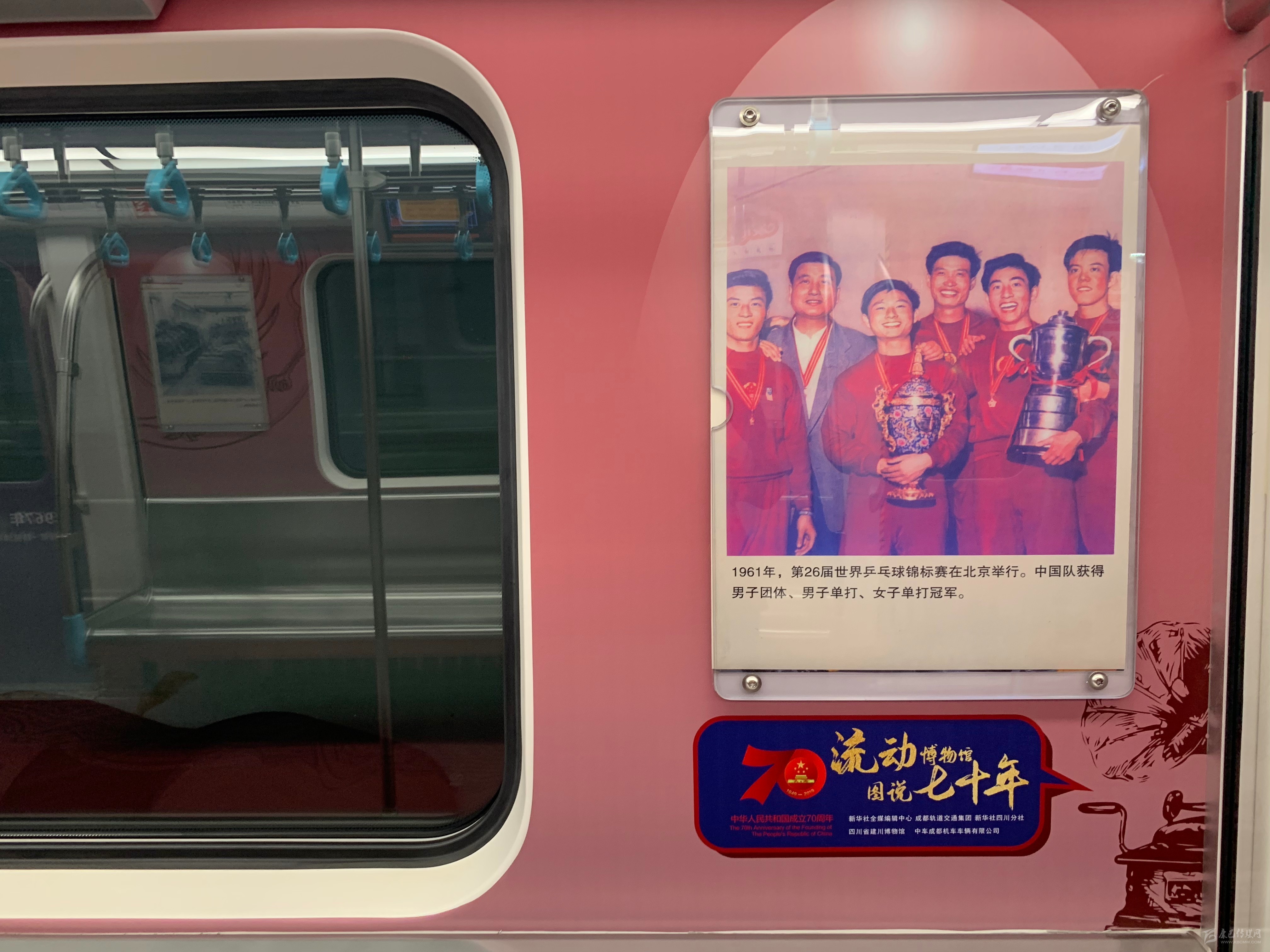 為慶祝中華人民共和國成立70周年,9月18日,“流動博物館”號主題列車在成都地鐵7號線(環(huán)線)正式上線?!傲鲃硬┪镳^”以精心挑選的老照片、文物復印件和全新原創(chuàng)愛國歌曲伴隨乘客回顧新中國70年光輝歲月,見證新中國70年來的歷史巨變。