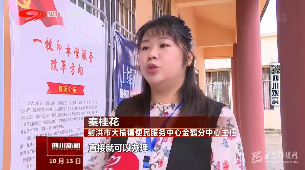 射洪市大榆鎮(zhèn)便民服務(wù)中心金鶴分中心主任秦桂花說(shuō):“現(xiàn)在這個(gè)一枚印章整合之后 這邊分中心直接就可以辦理 非常的便民?!?nbsp;